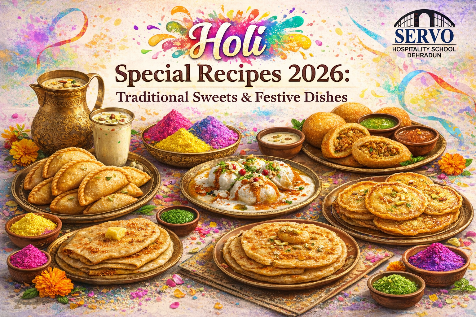At Servo Hospitality School (servoihm.com), we view festive cuisine not merely as celebration but as an opportunity to train future chefs in menu planning, technique precision, and guest experience delivery. This comprehensive guide explores authentic Holi dishes, professional preparation methods, party ideas, safety protocols, and a hotel-standard menu, all grounded in verified traditional practices followed in Indian culinary contexts.